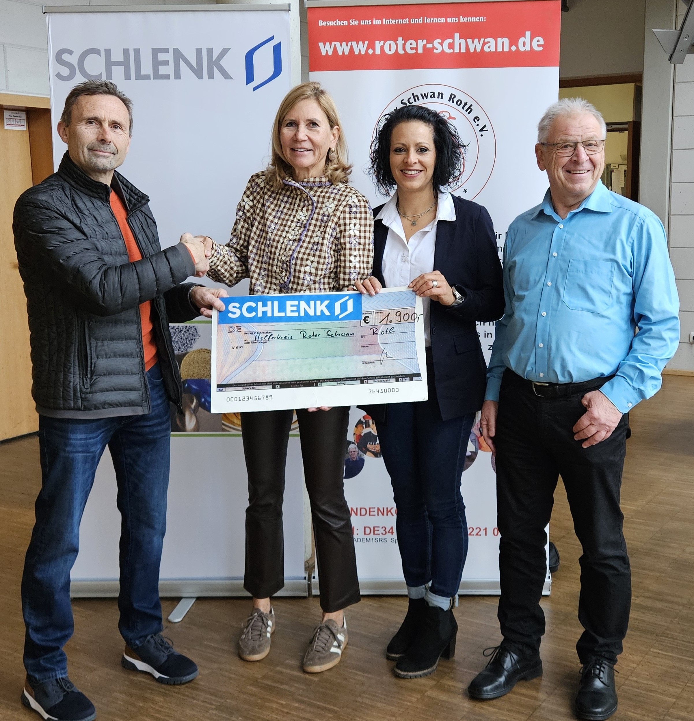 Frau Dr. von Schlenk(2. v. links) rundete den Betrag noch auf und so kann sich der Rote Schwan auf insgesamt 1900 Euro freuen.